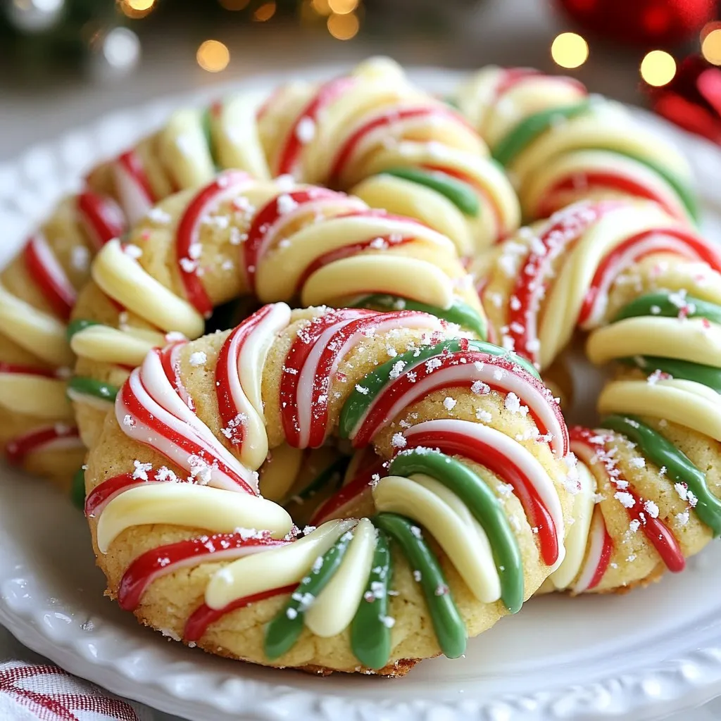 - 1 cup unsalted butter - 1 cup granulated sugar - 1 large egg - 1 teaspoon pure vanilla extract - 2 ½ cups all-purpose flour - 1 teaspoon baking powder - ½ teaspoon fine sea salt - ½ teaspoon peppermint extract - ½ cup crushed candy canes (plus extra for topping) - Red food coloring - Green food coloring When I create Candy Cane Cookies, I focus on using fresh, high-quality ingredients. The unsalted butter gives a rich base. Granulated sugar adds sweetness, while the egg binds everything together. Pure vanilla extract brings warmth and flavor to the mix. The all-purpose flour is essential for texture. Baking powder helps the cookies rise, making them soft and fluffy. Fine sea salt balances the sweetness and enhances flavors. Peppermint extract gives that classic candy cane taste. Crushed candy canes not only flavor the cookies but also add a lovely crunch. I use red and green food coloring to create that festive look. These colors mimic the iconic candy canes we all love during the holidays. - Melted white chocolate - Extra crushed candy canes For a special touch, I often drizzle melted white chocolate over my cookies. It adds creaminess and a beautiful contrast. Sprinkling extra crushed candy canes on top makes them even more festive and fun. {{ingredient_image_2}} - Preheat the oven to 350°F (175°C). - Line two baking sheets with parchment paper. - In a large bowl, cream together 1 cup of softened butter and 1 cup of sugar. Mix until light and fluffy. - Add 1 large egg and 1 teaspoon of vanilla extract. Beat until smooth. - In another bowl, mix 2 ½ cups of flour, 1 teaspoon of baking powder, and ½ teaspoon of salt. Slowly add this dry mix to the wet mix. Blend on low speed until just combined. - Divide the dough in half. - In one half, add ½ teaspoon of peppermint extract and red food coloring. Mix until colored. - In the other half, add green food coloring. Blend well. - Take 1 tablespoon of red dough and 1 tablespoon of green dough. Roll into logs about 4 inches long. Twist together to form candy cane shapes. - Place the shaped cookies on the lined sheets, leaving 2 inches between each. - Sprinkle tops with crushed candy canes for added fun. - Bake for 10-12 minutes until the edges are lightly golden. - Let cool for a few minutes on the sheets, then transfer to a wire rack to cool completely. To get the perfect dough, start with soft butter. It makes mixing easier. Mix the butter and sugar until light. This should take about 2 to 3 minutes. When you add the dry mix, do it slowly. Mix on low speed until just combined. This helps keep the cookies soft. Avoid over-mixing your dough. If you mix too much, the cookies can turn tough. Stop mixing as soon as you no longer see dry flour. This keeps the cookies light and airy. For a festive display, arrange cookies on a colorful platter. Use a mix of red and green to match the theme. Place them close but not touching, so they look full yet neat. Drizzling melted white chocolate adds a nice touch. It looks pretty and tastes great. After drizzling, sprinkle more crushed candy canes on top. This gives each cookie a festive crunch! One common mistake is overbaking the cookies. Keep an eye on them. They should be lightly golden at the edges and soft in the middle. Another mistake is not allowing the dough to cool. If you bake the dough too soon, it can spread too much. Chill it in the fridge for about 30 minutes. This helps the cookies hold their shape better. Pro Tips Chill the Dough: For easier handling and to prevent spreading, chill the cookie dough for 30 minutes before shaping. This helps the cookies maintain their shape during baking. Use Fresh Ingredients: Ensure your baking powder and extracts are fresh for the best flavor and texture in your cookies. Old ingredients can lead to flat or bland cookies. Experiment with Flavors: Feel free to substitute the peppermint extract with other flavors such as almond or vanilla for a unique twist on these festive cookies. Storage Tips: Store your cookies in an airtight container at room temperature for up to a week, or freeze them for longer storage. Just make sure to layer them with parchment paper to prevent sticking. {{image_4}} You can change the taste of your candy cane cookies by using different extracts. Instead of peppermint, try almond or vanilla. These extracts give the cookies a unique twist. Adding chocolate chips can also enhance the flavor. Use semi-sweet or dark chocolate chips for a rich taste. Mix them into the dough before you shape the cookies. If you need gluten-free cookies, swap the all-purpose flour with a gluten-free blend. Make sure the blend includes xanthan gum for the right texture. For vegan candy cane cookies, replace the egg with a flaxseed egg. To make this, mix one tablespoon of ground flaxseed with three tablespoons of water. Let it sit for a few minutes to thicken. Use vegan butter in place of regular butter. Decorating your cookies can be fun! Use colored sugar or sprinkles for extra flair. Just sprinkle them on top before baking. You can also shape your cookies into festive forms. Try making stars, trees, or even simple circles. Each shape adds a special touch to your holiday treats. To keep your candy cane cookies fresh, use a few simple steps. Store them at room temperature in an airtight container. This helps lock in moisture. You can also stack parchment paper between layers to keep them from sticking. If you have more cookies than you can eat, freeze them! Place the cookies in a freezer-safe container. Use layers of wax paper to separate them. This prevents them from sticking together. At room temperature, the cookies last about one week. They taste best fresh, but they still remain good for days. When freezing, candy cane cookies can last up to three months. To thaw, just take them out and let them sit at room temperature for about an hour. This way, they return to their soft and tasty form. Enjoy them anytime! To crush candy canes, first, unwrap th
