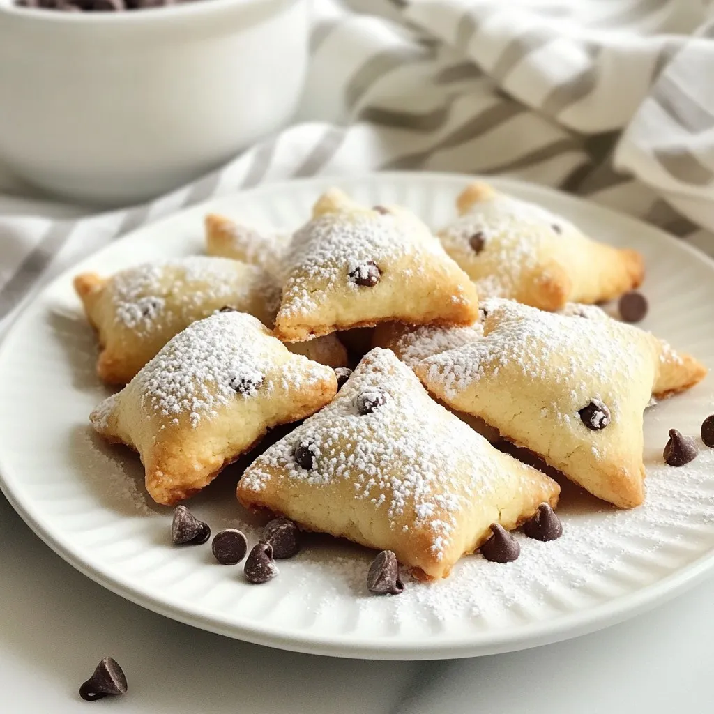To make Cannoli Cookies, you need a few simple items. Here’s what you will need: - 1 cup all-purpose flour - 1/2 teaspoon baking powder - 1/4 teaspoon salt - 1/2 teaspoon ground cinnamon - 1/2 cup unsalted butter, softened to room temperature - 1/2 cup granulated sugar - 1 large egg - 1 teaspoon vanilla extract - 1/2 cup ricotta cheese (drained if watery) - 1/4 cup mini chocolate chips - 1/4 cup powdered sugar (for dusting) Each ingredient plays a key role in making these cookies delightful. The all-purpose flour gives the cookies structure. Baking powder helps them rise. Salt enhances flavor, while cinnamon adds warmth. Butter and sugar create a creamy base. The egg binds everything together, and vanilla adds a sweet aroma. Ricotta cheese gives a rich, creamy texture. Finally, the chocolate chips add little bursts of sweetness. Gather these ingredients before you start. It makes the process smooth and fun! {{ingredient_image_2}} - Preheat your oven to 350°F (175°C). Line a baking sheet with parchment paper. - In a medium bowl, mix together 1 cup of all-purpose flour, 1/2 teaspoon baking powder, 1/4 teaspoon salt, and 1/2 teaspoon ground cinnamon. Set this dry mix aside. - In a large bowl, cream together 1/2 cup softened butter and 1/2 cup granulated sugar. Use an electric mixer for 2-3 minutes until fluffy. - Add 1 large egg and 1 teaspoon vanilla extract to the creamed butter and sugar. Beat until smooth and mixed well. - Gradually mix the dry ingredients into your wet mixture. Stir until just combined. Don't overmix; this keeps the cookies tender. - Use a spatula to fold in 1/2 cup drained ricotta cheese and 1/4 cup mini chocolate chips. Make sure they are evenly spread in the dough. - Use a tablespoon or cookie scoop to portion the dough into small balls. Place them on the prepared baking sheet, leaving 2 inches between them. - Bake for 12-15 minutes. Look for golden brown edges and soft centers. - Let the cookies cool on the baking sheet for 5 minutes. Then, move them to a wire rack to cool completely. - Once cooled, lightly dust with 1/4 cup powdered sugar to add a lovely finish before serving. To ensure tender cookies, do not overmix the dough. When you combine wet and dry ingredients, mix just until you see no flour. This keeps your cookies soft and chewy. The ideal baking time for these cookies is 12-15 minutes. Look for golden edges while the center stays soft. This combination gives you the best texture. For a lovely presentation, arrange the cannoli cookies on a colorful plate. Scatter extra mini chocolate chips around them for a fun look. You can pair these cookies with whipped cream. This adds a sweet touch for dipping and makes each bite even better. Enjoy the flavors together! Pro Tips Use High-Quality Ricotta: For the best flavor and texture, opt for whole milk ricotta cheese. It provides a creamier consistency and enhances the overall taste of your cookies. Chill the Dough: If you find the dough is too soft to handle, refrigerate it for about 30 minutes. This will make rolling the cookies easier and help them maintain their shape while baking. Customize the Mix-Ins: Feel free to experiment with different mix-ins like chopped nuts or dried fruit to create your own unique twist on these cannoli cookies. Store Properly: To keep your cookies fresh, store them in an airtight container at room temperature for up to a week. You can also freeze them for longer storage! {{image_4}} To make your cannoli cookies even more fun, you can try adding citrus zests. Zest from lemons or oranges gives a bright, fresh taste. Just add about a teaspoon of zest to your dough. This small change can make a big difference in flavor! You can also explore different types of chocolate. Instead of mini chocolate chips, try dark chocolate chunks or white chocolate. Each type brings its own unique taste. You can even mix several kinds for a chocolate lover's dream! If you need gluten-free options, you can use gluten-free flour. Make sure to use a blend that works well for baking. This way, everyone can enjoy these cookies without worry. For vegan substitutions, swap the butter with a vegan butter or coconut oil. Use a flax egg instead of a regular egg. To make a flax egg, mix one tablespoon of ground flaxseed with three tablespoons of water. Let it sit for a few minutes to thicken. These swaps keep your cookies vegan while still tasting amazing! To keep your cannoli cookies fresh, use an airtight container. This type of container helps prevent moisture loss. You can stack the cookies in a single layer or add parchment paper between layers. Before you store them, let the cookies cool completely. Cooling prevents sogginess. Place them on a wire rack for even cooling. Cannoli cookies last about 5 days at room temperature. Store them in a cool, dry place. If you want to keep them longer, freezing is a great option. To freeze your cookies, place them in a freezer-safe bag or container. Make sure to remove as much air as possible. They can stay in the freezer for up to 3 months. When you’re ready to eat them, thaw them at room temperature. Enjoy your sweet treat later! Can I use ricotta cheese substitutes? Yes, you can. Cream cheese or mascarpone works well. They provide a similar creamy texture. How do I know when the cookies are done? Look for golden edges and a soft center. The cookies should look puffy but not wet. Can I make the dough ahead of time? Yes, you can. Chill the dough for up to two days. Just wrap it tightly before storing. What type of flour works best? All-purpose flour is ideal for these cookies. It gives the right texture and structure. Can I add nuts to the dough? Absolutely! Chopped pistachios or walnuts add a nice crunch. Just mix them in gently. What is the best way to ensure cookies are chewy? Do not overmix the dough. Mixing just until combined keeps them tender and chewy. How can I make my cookies more flavorful? Try adding a bit of almond extract or extra vanilla. A pinch of