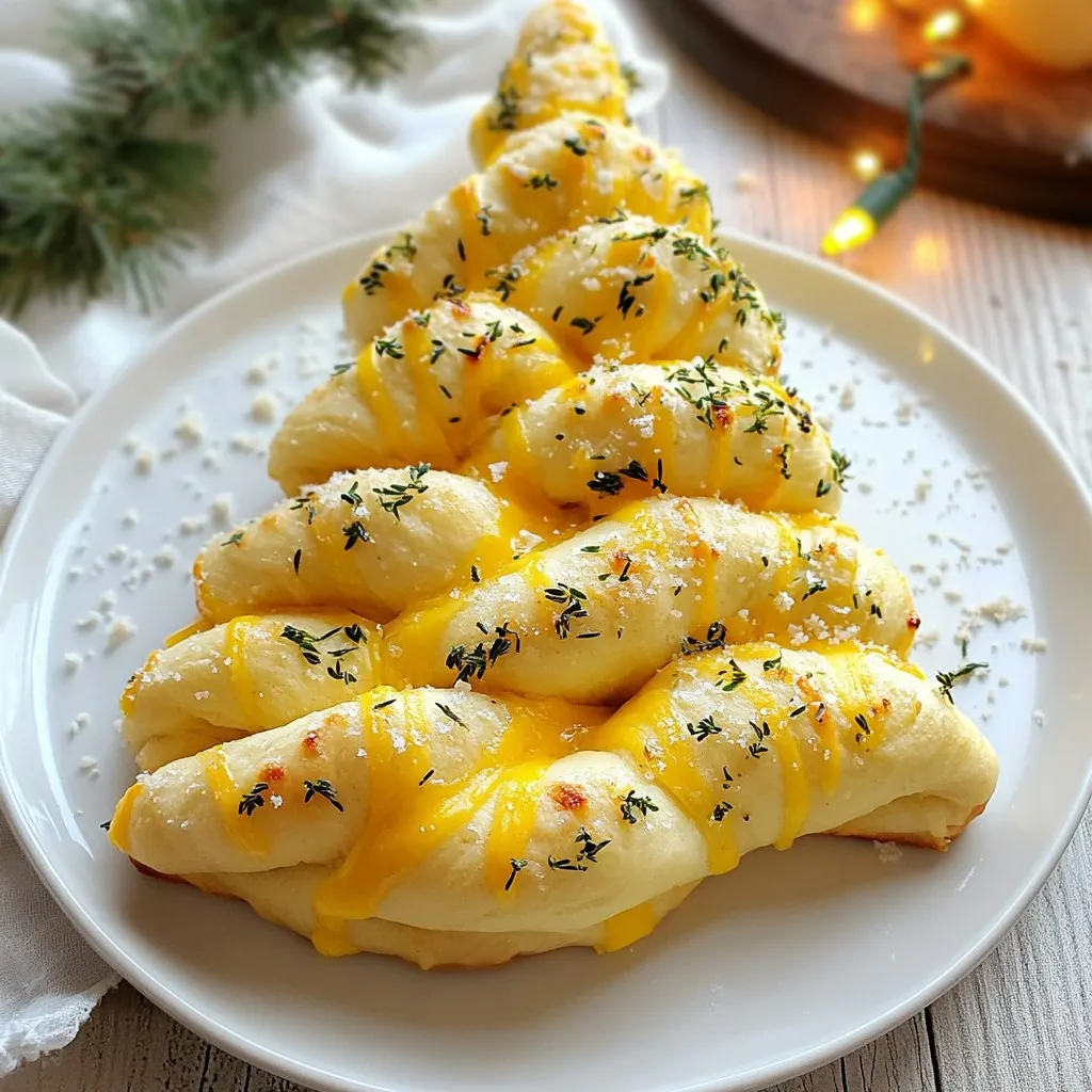 A festive and delicious bread shaped like a Christmas tree, filled with cheese and herbs.