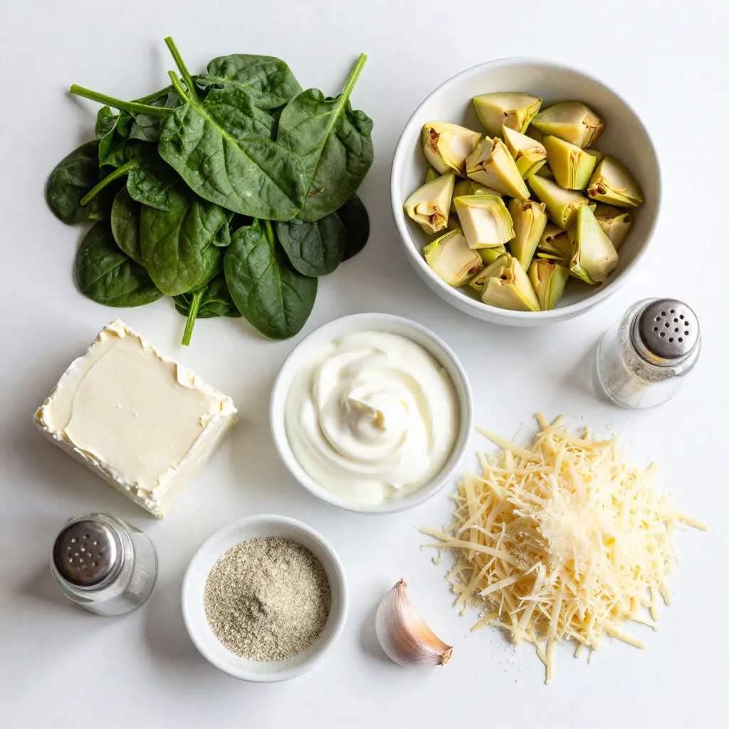 To make the perfect Cheesy Spinach Artichoke Dip, gather these simple ingredients: