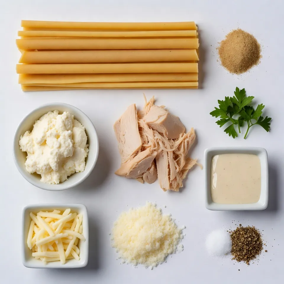 To make Chicken Alfredo Lasagna Rolls, you need a mix of tasty ingredients. Start with 9 lasagna noodles. These will hold all the yummy filling. You will also need 2 cups of cooked chicken. Shred it well so it mixes nicely with other ingredients.