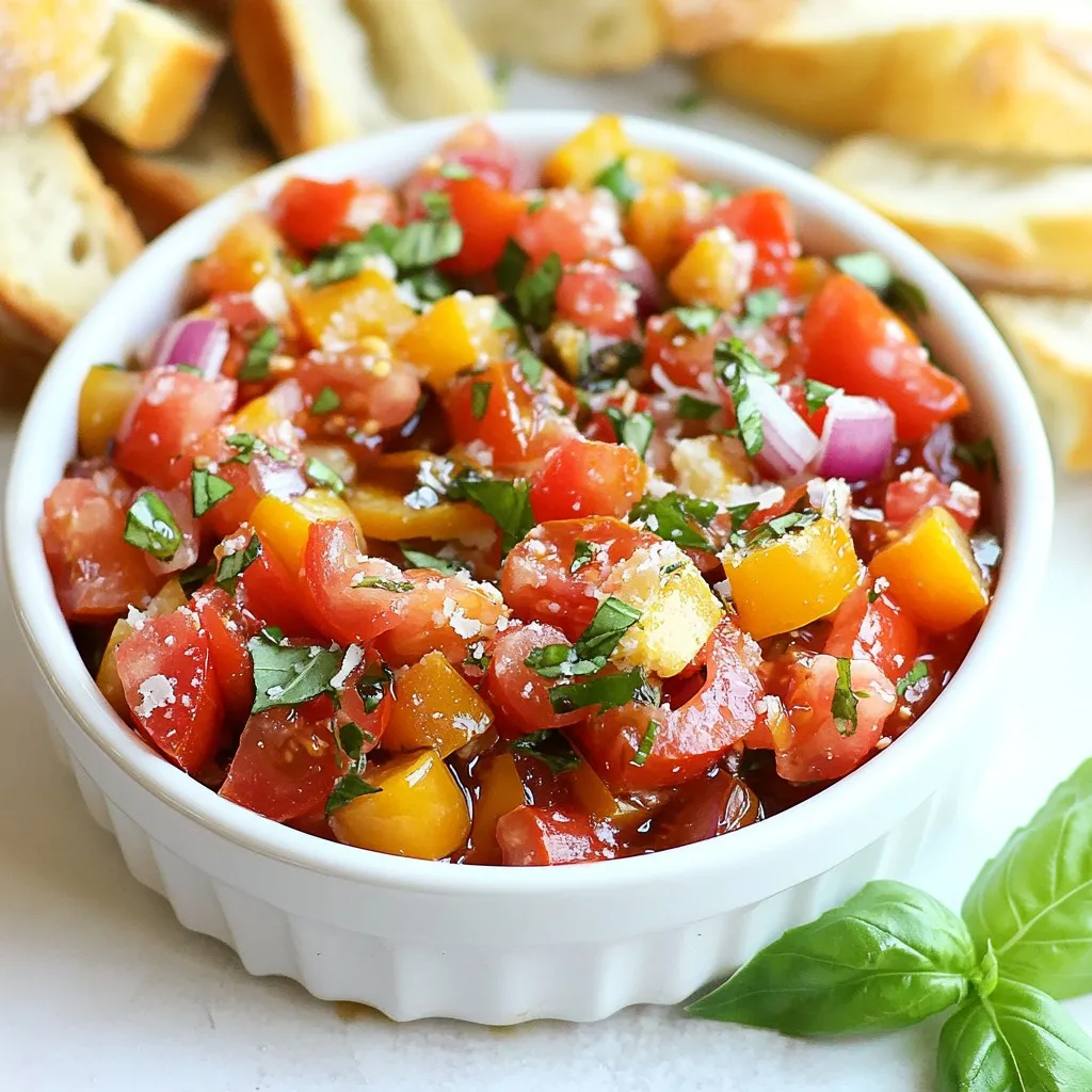 You can easily change the flavors in your Chunky Bruschetta Dip. Adding diced avocado makes it creamy and rich. The avocado blends well with the fresh tomatoes. You can also try adding herbs like parsley or cilantro. These herbs give the dip a fresh twist and a new taste.