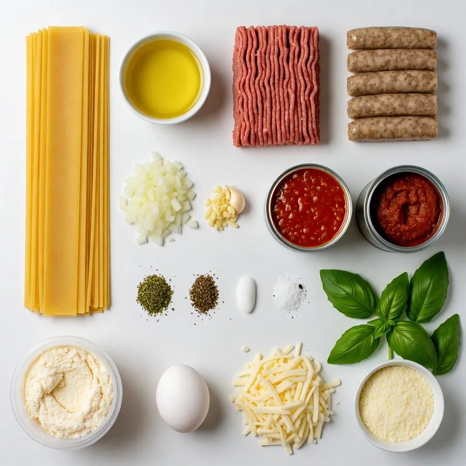 Gather these fresh ingredients before you start cooking. Each one plays a key role in making the lasagna rich and tasty. The combination of meats, cheeses, and herbs gives it a classic flavor that everyone loves.