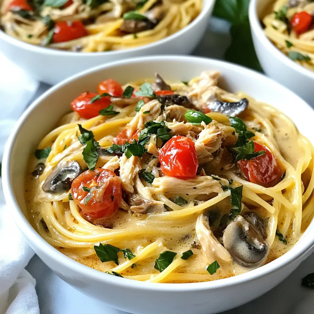 A comforting and creamy chicken spaghetti dish cooked in a crockpot, perfect for busy days.