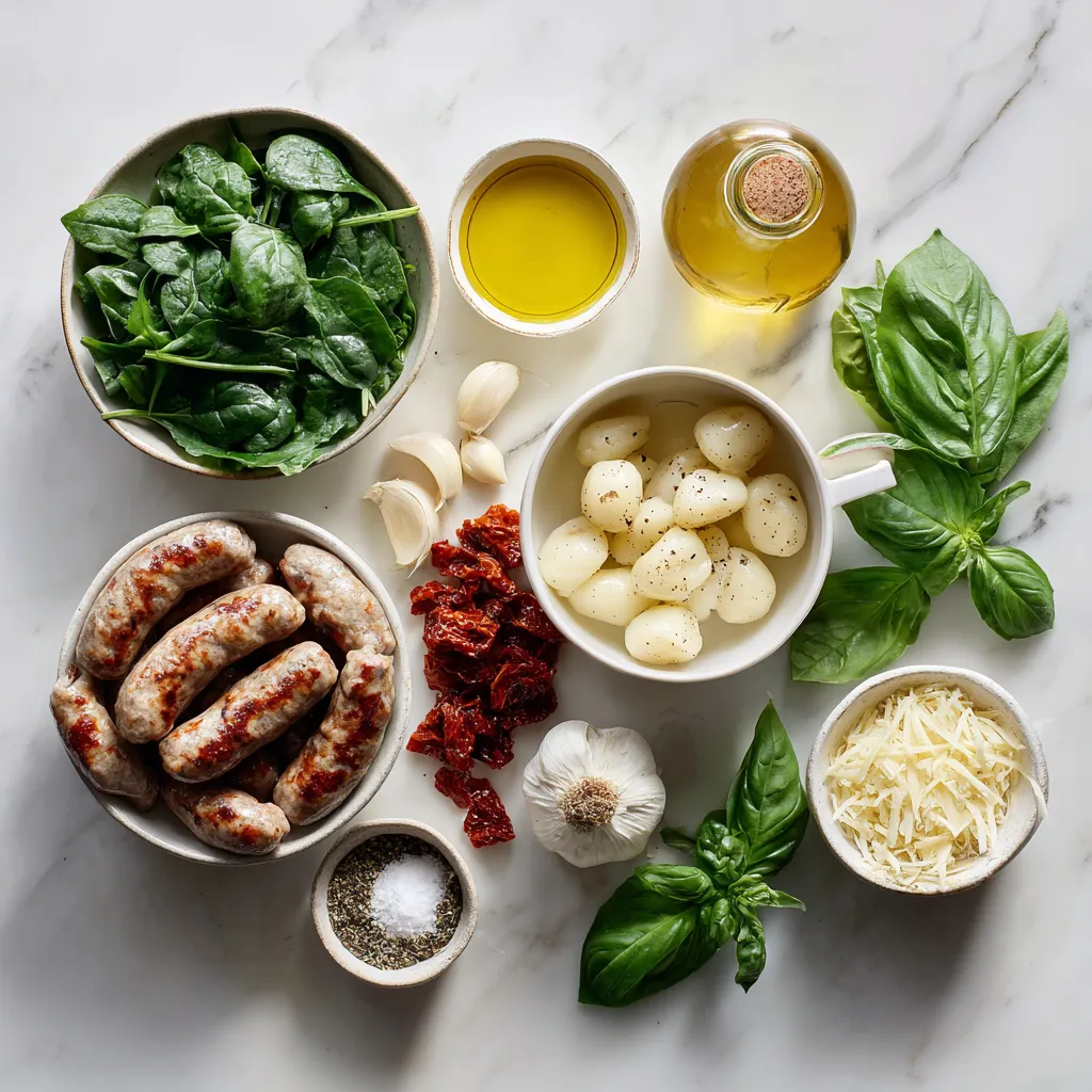 The main ingredients are key to making this creamy sausage gnocchi skillet. The Italian sausage adds a rich flavor. You can choose mild for a gentle taste or spicy for a kick. Gnocchi gives a soft, pillowy texture. Use store-bought for ease or homemade for a fun challenge. Heavy cream makes the dish rich and smooth. Chicken broth adds depth, while fresh spinach brings color and nutrition.