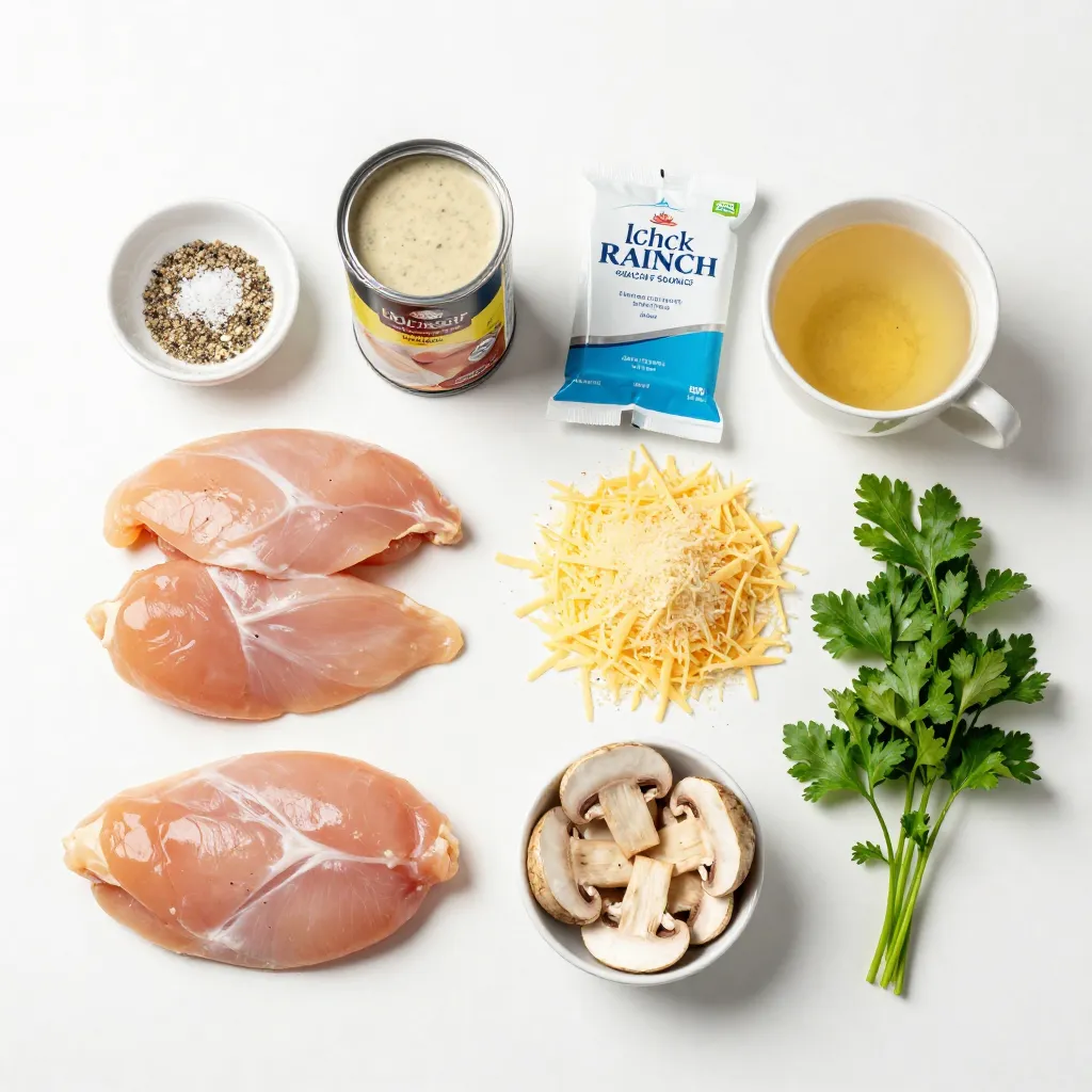 Each ingredient plays a role in creating a rich and tasty dish. The chicken breasts provide a tender base. Cream of chicken soup adds creaminess. Ranch seasoning brings flavor, while the cheeses create a delightful topping. Mushrooms are an optional addition for extra depth. The garlic powder enhances taste, and salt and pepper balance all the flavors. Finally, fresh parsley not only garnishes but adds a lovely color.