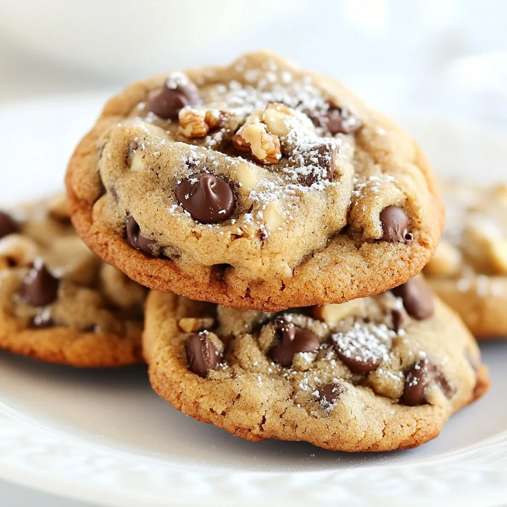 To make these amazing cookies, you need a few key ingredients: - 1 cup unsalted butter, softened - 3/4 cup granulated sugar - 3/4 cup packed brown sugar - 2 large eggs, at room temperature - 2 teaspoons pure vanilla extract - 2 tablespoons espresso powder - 2 cups all-purpose flour, sifted - 1 teaspoon baking soda - 1/2 teaspoon fine sea salt - 1 1/2 cups semi-sweet chocolate chips These ingredients create a rich base that gives the cookies a deep flavor. You can add a few optional ingredients for a twist: - 1/2 cup chopped walnuts These walnuts add a nice crunch and a bit of earthiness. When selecting espresso powder, look for these tips: - Choose a brand that lists espresso as the only ingredient. - Check for a fine, smooth texture. - Avoid instant coffee. It won’t give the same rich flavor. A quality espresso powder enhances the cookie’s taste, making every bite special. {{ingredient_image_2}} First, set your oven to 350°F (175°C). This is the perfect temperature for baking. While the oven heats, line two baking sheets with parchment paper. This will help the cookies not stick. In a large bowl, add one cup of softened butter. Then, mix in 3/4 cup of granulated sugar and 3/4 cup of brown sugar. Use an electric mixer on medium speed. Blend for about 2-3 minutes until the mix is light and fluffy. This step adds air, making cookies soft. Next, crack two large eggs into the bowl, one at a time. Make sure to blend well after each egg. Then add two teaspoons of pure vanilla extract and two tablespoons of espresso powder. Mix until everything is smooth and well combined. The espresso will give the cookies a rich flavor. In another bowl, whisk together two cups of sifted all-purpose flour, one teaspoon of baking soda, and 1/2 teaspoon of fine sea salt. Gradually add this dry mix to the wet ingredients. Mix on low speed until just combined. Don't overmix; this keeps the cookies tender and soft. Now, take a spatula and gently fold in 1 1/2 cups of semi-sweet chocolate chips. If you want extra crunch, add 1/2 cup of chopped walnuts. Make sure the chips and nuts are evenly spread through the dough. Use a cookie scoop or tablespoon to drop rounded dough onto the baking sheets. Leave space between each scoop. Bake for 10-12 minutes. The edges should look golden brown, while the centers stay soft. Let the cookies cool for 5 minutes before moving them to a wire rack. Enjoy your fresh-baked treats! To get soft and chewy cookies, follow these tips: - Use room temperature butter. This helps mix well with sugars. - Don’t overmix the dough. Stop mixing once the flour is just combined. - Scoop and chill your dough for at least 30 minutes before baking. This helps the cookies hold their shape. - Underbake slightly. Pull cookies out when the edges are golden but the centers look soft. Many home cooks make these errors: - Using cold butter. This can lead to dense cookies. Always soften it first. - Skipping the espresso powder. It adds a rich coffee flavor that enhances chocolate. - Not measuring flour correctly. Use a spoon to fluff the flour first, then scoop it into the measuring cup. - Not checking the oven temperature. An oven thermometer can help you avoid baking issues. Accurate measurements matter for great cookies. Here’s how: - Use a kitchen scale for dry ingredients. It ensures you use the right amount. - Spoon and level flour. Avoid packing it down in the cup. - Liquid ingredients should be measured at eye level. This helps you see the true amount. - Use room temperature eggs. They mix better and help the dough rise. Pro Tips Use Fresh Espresso Powder: Ensure your espresso powder is fresh to enhance the coffee flavor in your cookies. Stale powder can dull the taste. Chill the Dough: For even better flavor and texture, chill the dough for at least 30 minutes before baking. This helps the cookies hold their shape and enhances the flavors. Experiment with Chocolate: Try using a mix of chocolate types, such as dark or white chocolate, for a unique flavor twist in your cookies. Store Properly: To keep your cookies fresh, store them in an airtight container at room temperature. They can also be frozen for longer storage. {{image_4}} You can change the type of chocolate chips you use. Semi-sweet chocolate chips are classic, but dark chocolate adds a rich taste. Milk chocolate gives a sweeter, creamier flavor. If you love white chocolate, try it for a fun twist. Using a mix of chips can create layers of flavor. Just remember, the chocolate should melt well into the cookie dough. If you need nut-free cookies, simply skip the walnuts. The cookies will still taste great. For gluten-free cookies, swap all-purpose flour with a gluten-free blend. Be sure to check the blend is designed for baking. This way, your cookies will stay fluffy and delicious without gluten. You can add extra flavors to make these cookies unique. A pinch of cinnamon can add warmth. For a hint of orange, add some zest from an orange peel. You can even mix in toffee bits or coconut for a chewy texture. Each addition brings new excitement to your cookies. Experiment and find your favorite combo! To keep your cookies fresh, store them in an airtight container. Place parchment paper between layers to avoid sticking. You can also use a resealable plastic bag. Store them at room temperature for up to one week. If you want to keep them longer, freezing is a great option. To freeze cookies, first let them cool completely. Then, place them in a single layer on a baking sheet. Freeze for about 1-2 hours until firm. After that, transfer them to a freezer-safe bag or container. Label with the date. They can last in the freezer for up to three months. To reheat cookies, preheat your oven to 300°F (150°C). Place the cookies on a baking sheet. Heat for about 5-8 minutes until warm. You can also use the microwave. Heat for 10-15 seconds, but watch closely. Enjoy them warm for the best taste! You can make these cookies healthier by swapping some