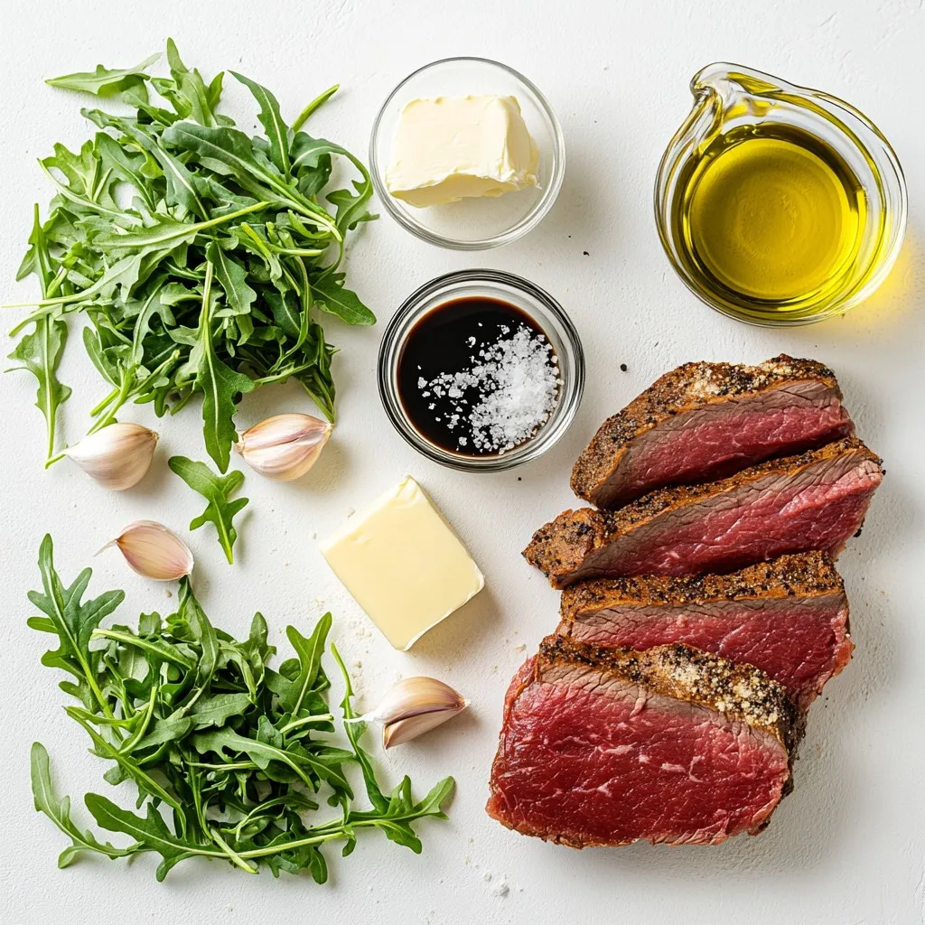 • Assemble the Crostini: Take a toasted baguette slice and brush it generously with the garlic butter. Next, layer a few slices of the rested steak on top of the buttered bread. Follow this with a small handful of arugula or baby spinach for a fresh contrast.