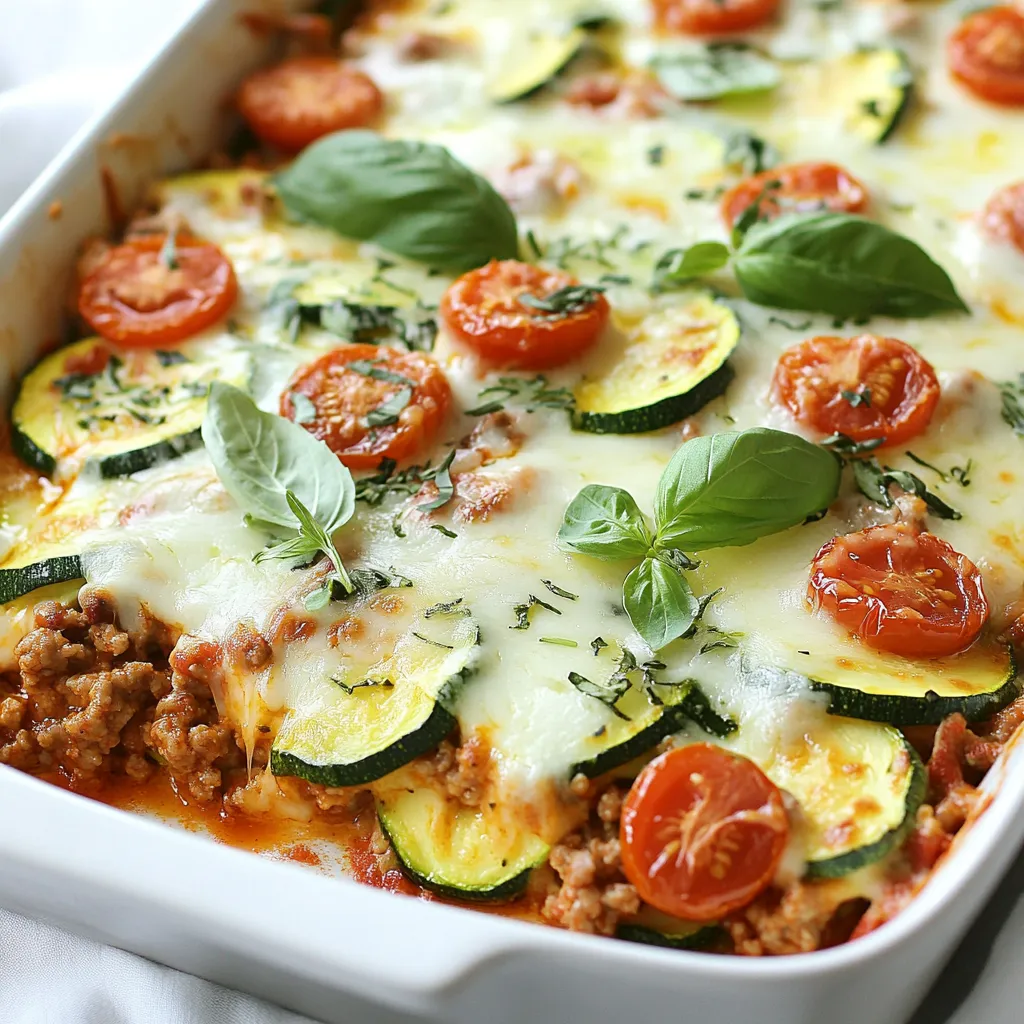This dish starts with ground turkey. It provides lean protein and a nice texture. Zucchini adds moisture and a mild flavor. Cherry tomatoes bring sweetness and color. Onions and garlic give a strong aroma. Mozzarella and ricotta cheeses make it creamy and rich. Oregano and basil offer a lovely herb taste.