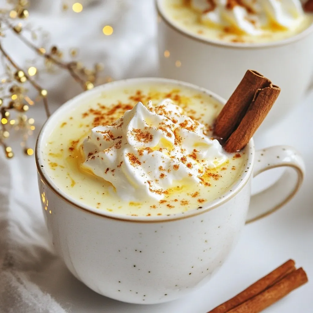 Serve in a charming mug and garnish with a sprinkle of nutmeg and a cinnamon stick.
