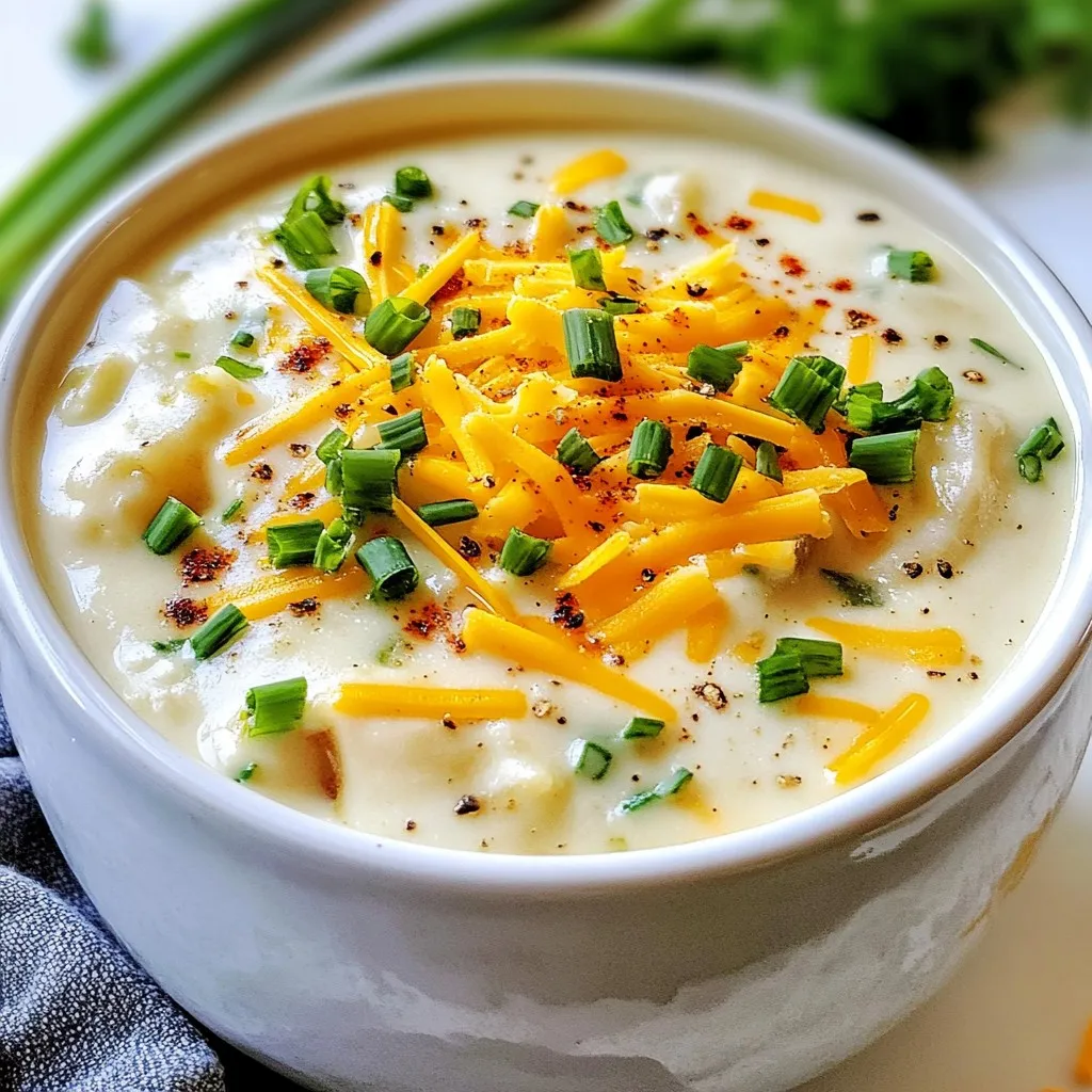 Garnishing can elevate your soup. Try adding a sprinkle of extra cheddar cheese on top. You can also include sliced green onions for a fresh crunch. If you want a bit of crunch, crumbled turkey bacon works great. For a pop of color, add chopped chives. Serve the soup in rustic bread bowls for an extra cozy touch.