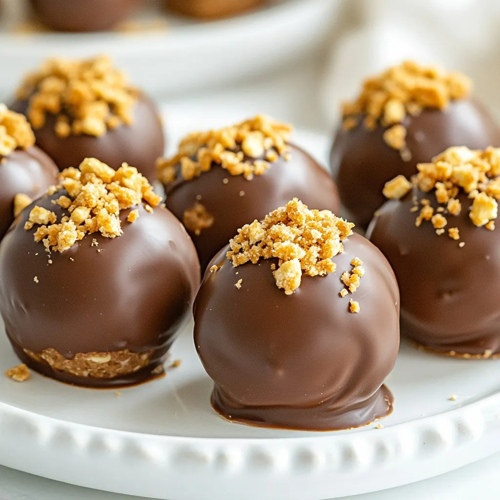 • Once all the balls are coated, sprinkle a few crushed Butterfinger pieces or additional graham cracker crumbs on top of each for a delightful garnish, if desired.