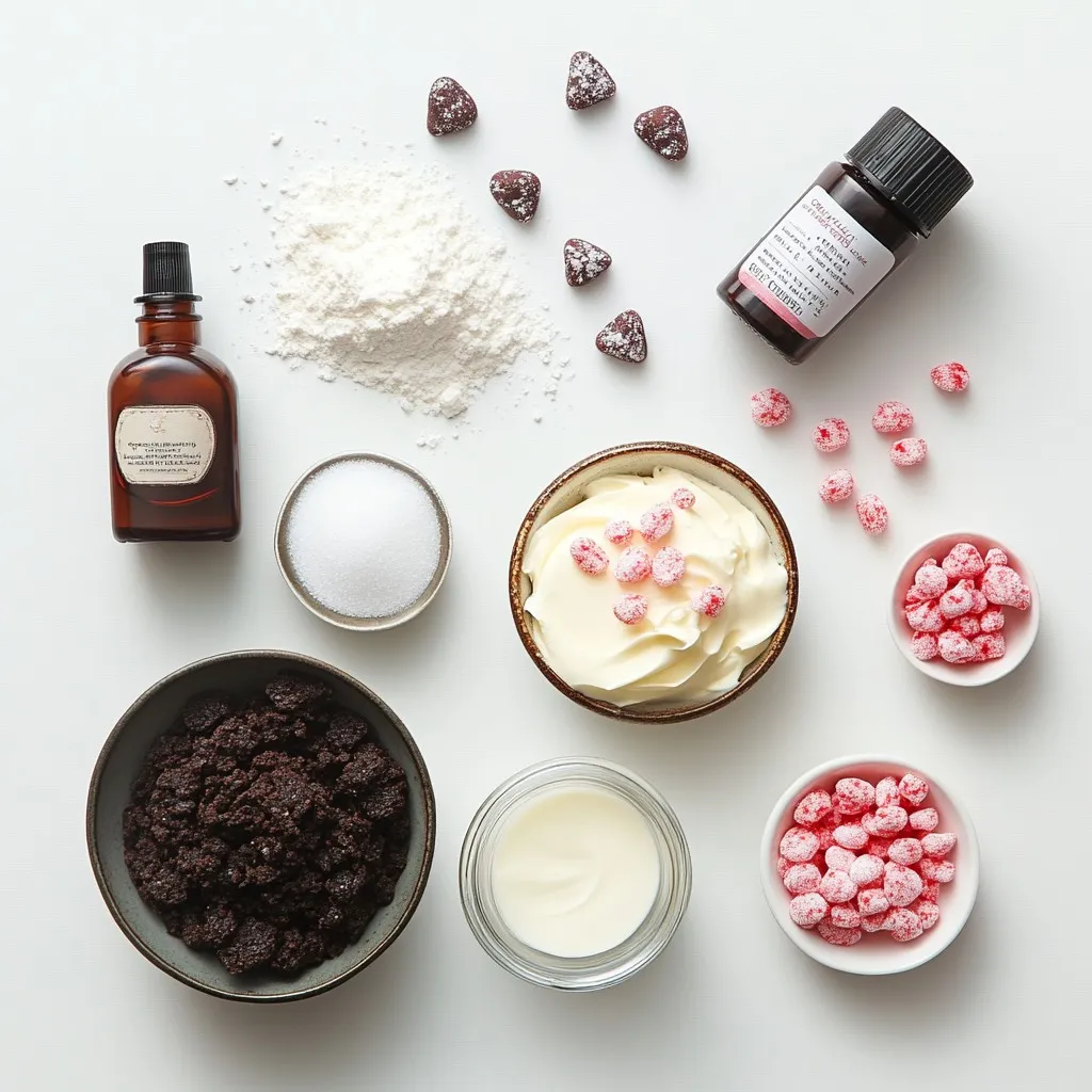 To create a no-bake peppermint cheesecake, you need the right ingredients. The base starts with chocolate cookie crumbs. These crumbs give your cheesecake a rich, chocolatey taste. You mix them with melted unsalted butter. This mix makes a solid crust.