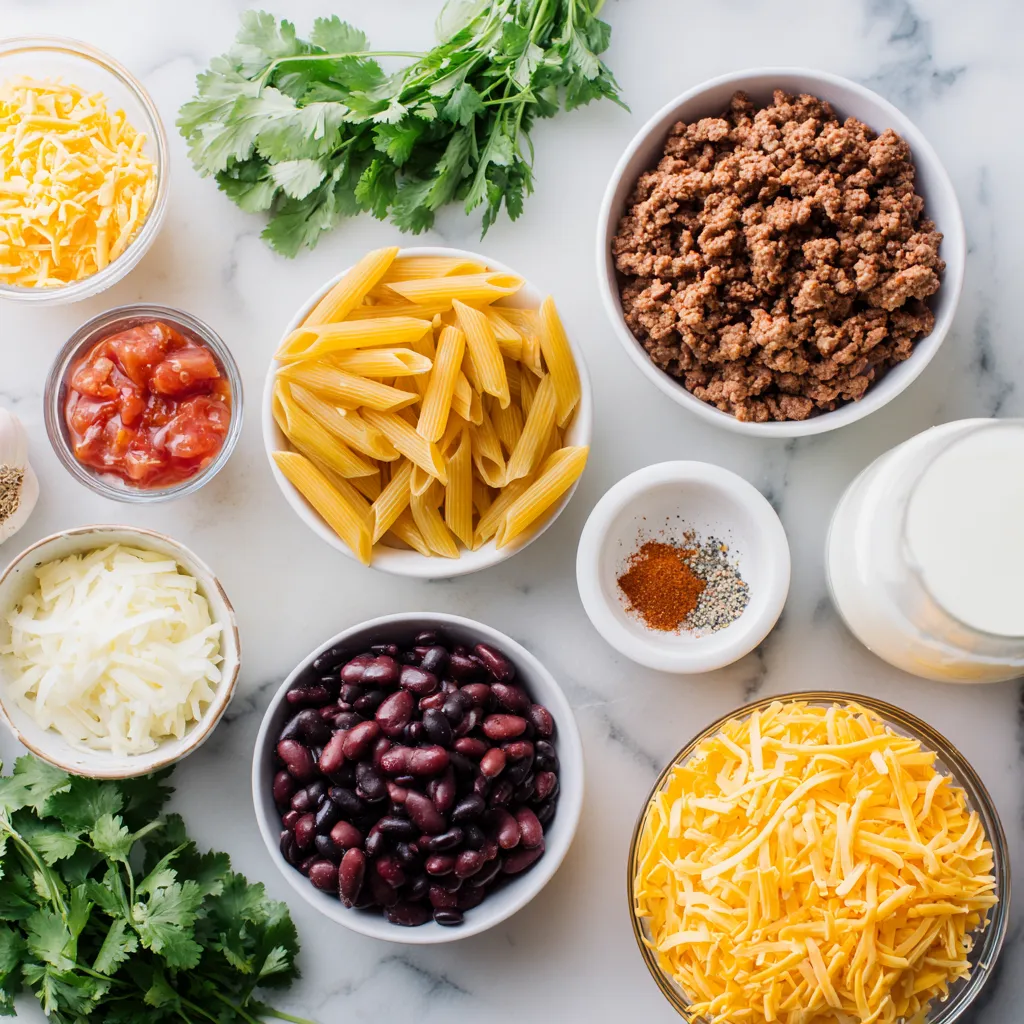 When choosing pasta for this dish, I suggest using penne or rotini. Both shapes hold sauce well. Penne has a smooth surface that allows the sauce to cling. Rotini, with its spirals, traps chunks of meat and beans. Either option makes a great base for your creamy taco sauce.