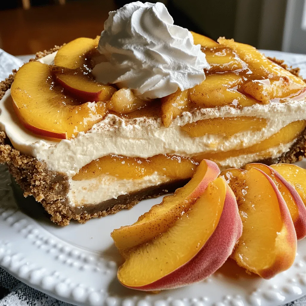 For a stunning presentation, slice the cheesecake and place it on individual plates. Add fresh peach slices on top for color. A dollop of whipped cream adds a creamy touch.