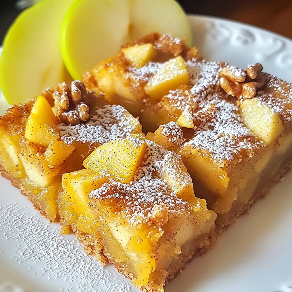 For a festive serving, cut the squares into uniform pieces and arrange them on a beautiful platter. Garnish with a light dusting of ground cinnamon and thinly sliced fresh apple rounds.
