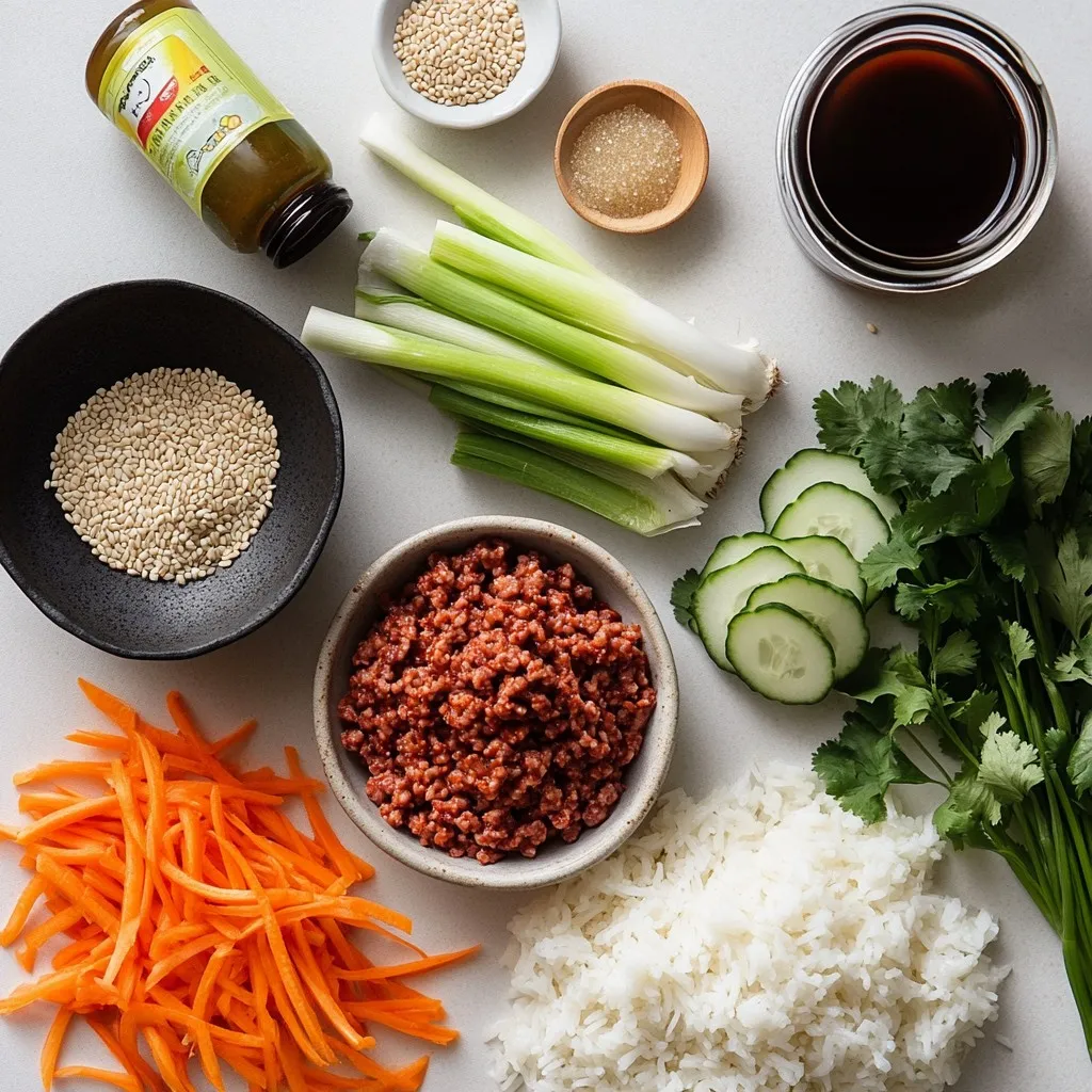 Gathering the right ingredients is key. For the base, you can use either ground beef or ground turkey. Both are tasty and cook well. I often choose ground turkey for a lighter meal. Green onions add a fresh crunch and a burst of flavor. Don’t skip the garlic; it gives depth to your dish.