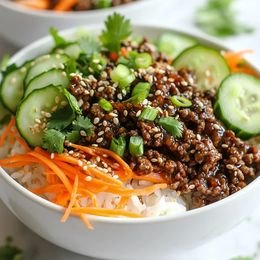 A quick and delicious Korean-inspired dish featuring ground beef, fresh vegetables, and rice.