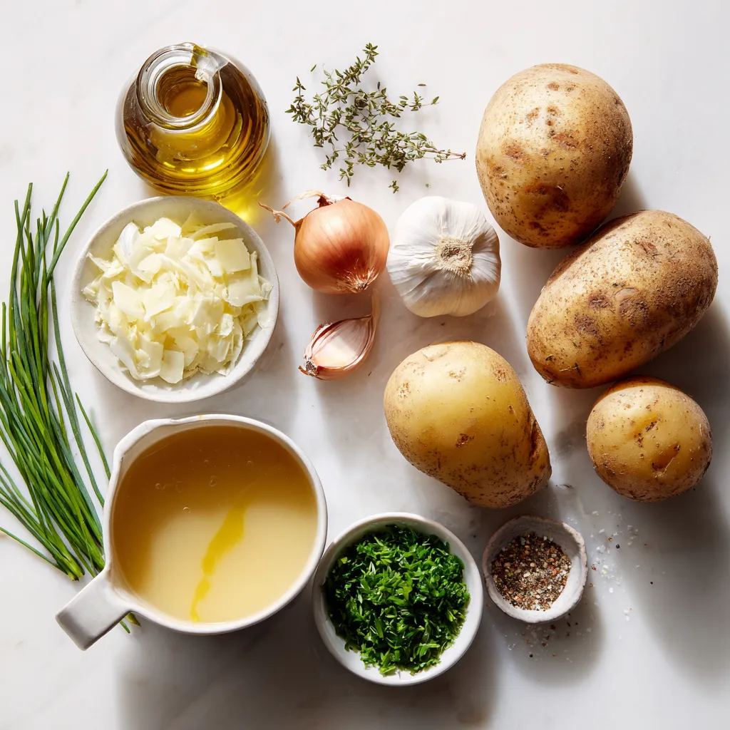 First, gather all your ingredients. You need russet potatoes, onion, garlic, and broth. Start by peeling the potatoes. Dice them into 1-inch cubes for even cooking. Next, chop the onion finely. Mince the garlic cloves. This prep helps the flavors blend well in the soup.