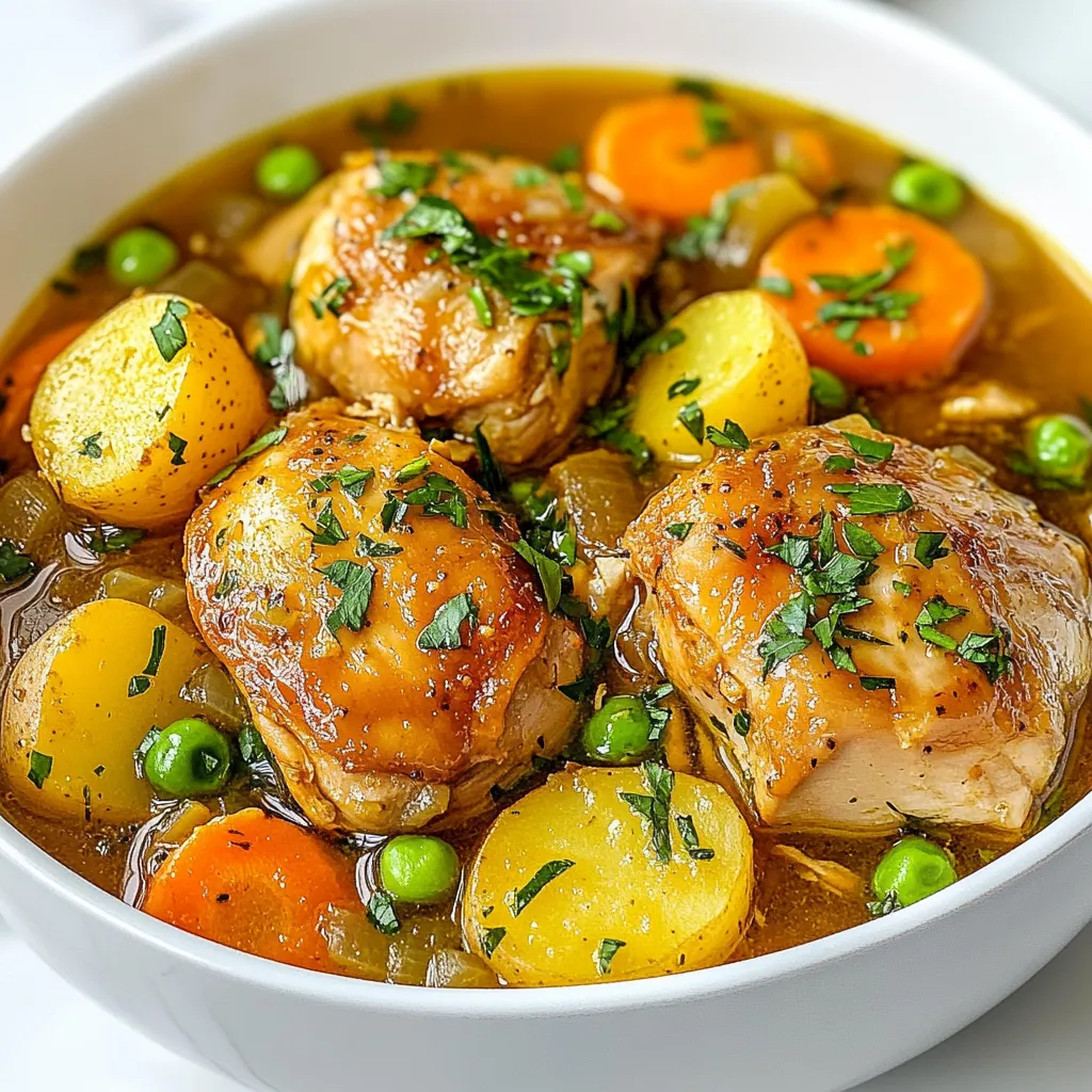 - 2 lbs boneless, skinless chicken thighs, cut into bite-sized chunks - 4 medium carrots, peeled and sliced into rounds - 3 medium potatoes, diced into 1-inch cubes - 1 large onion, finely chopped - 3 cloves garlic, minced - 1 cup celery, sliced into small pieces - 4 cups low-sodium chicken broth - 1 cup frozen green peas - 1 tablespoon Worcestershire sauce - 1 teaspoon dried thyme - 1 teaspoon dried rosemary - Salt and freshly ground black pepper, to taste - 2 tablespoons olive oil - Fresh parsley, chopped, for garnish Using fresh, high-quality ingredients makes a big difference. I prefer using organic chicken and vegetables when possible. This choice not only enhances flavor but also supports local farmers. Fresh herbs, such as rosemary and thyme, bring vibrant taste. So, if you can find them, use fresh instead of dried. Some ingredients can be swapped if needed. For the chicken, you can use chicken breasts if you prefer leaner meat. If you’re short on time, pre-cut veggies work well. For a gluten-free option, ensure your Worcestershire sauce is gluten-free. Lastly, if you don't have fresh parsley, try using green onions for garnish. {{ingredient_image_2}} Start by gathering all your ingredients. You will need: - 2 lbs boneless, skinless chicken thighs, cut into bite-sized chunks - 4 medium carrots, peeled and sliced into rounds - 3 medium potatoes, diced into 1-inch cubes - 1 large onion, finely chopped - 3 cloves garlic, minced - 1 cup celery, sliced into small pieces - 4 cups low-sodium chicken broth - 1 cup frozen green peas - 1 tablespoon Worcestershire sauce - 1 teaspoon dried thyme - 1 teaspoon dried rosemary - Salt and freshly ground black pepper, to taste - 2 tablespoons olive oil - Fresh parsley, chopped, for garnish Next, heat the olive oil in a large skillet over medium heat. Add the chopped onion and minced garlic. Cook for 3-5 minutes until the onion is soft and smells great. This step boosts the flavor of your stew. Carefully transfer the onion and garlic to your slow cooker. This is where the magic happens! Now it’s time to add the chicken. Place the bite-sized chicken thighs into the slow cooker. Next, add the sliced carrots, diced potatoes, and sliced celery. Sprinkle in the dried thyme and rosemary evenly. Pour in the low-sodium chicken broth and add the Worcestershire sauce. Stir everything gently but well to mix. Season with salt and freshly ground black pepper to your liking. Cover the slow cooker. You can cook on low for 6-8 hours or high for 3-4 hours. The chicken should be tender and cooked through. In the last 30 minutes of cooking, stir in the frozen peas. This keeps them bright and fresh without getting mushy. When cooking time is up, taste your stew. Adjust the seasoning if needed. Ladle the hearty stew into bowls. Top each bowl with freshly chopped parsley for a pop of color. Serve with slices of warm, crusty bread for a complete meal. Enjoy the warmth and comfort of your savory stew! To make a perfect chicken stew, start with good chicken. Use boneless, skinless thighs for the best flavor. Cut them into bite-sized chunks for even cooking. Sauté the onion and garlic first. This adds depth to your stew. Cook them until the onion is soft and clear. Then, add them to the slow cooker. Layer your ingredients. Add the chicken, carrots, potatoes, and celery. This helps all the flavors mix well. Pour in the chicken broth last to keep everything moist. Check the seasoning. Always taste your stew before serving. Adjust with salt and pepper as needed. A few simple tricks can boost your stew's flavor. Add Worcestershire sauce for a savory kick. Use fresh herbs like parsley for bright notes. Consider adding a splash of lemon juice at the end. It brightens the flavors. You can also try a pinch of cayenne for heat. Don't skip the frozen peas. Stir them in during the last 30 minutes. They add color and sweetness to the dish. One common mistake is overcooking the chicken. Slow cookers work slowly, so don't rush. Set it to low for 6-8 hours. Avoid cooking on high for too long. Another mistake is not seasoning enough. Chicken can be bland without enough salt and pepper. Taste as you go to ensure balance. Lastly, don't crowd the slow cooker. Ensure there’s enough space for steam. This helps the stew cook evenly and stay flavorful. Pro Tips Use Fresh Herbs: Fresh herbs can elevate the flavor profile of your stew significantly. Consider adding fresh thyme or rosemary just before serving for an aromatic finish. Layering Flavors: Sautéing the onions and garlic before adding them to the slow cooker enhances their flavor. This simple step builds a more complex taste in your stew. Adjust Consistency: If your stew turns out too thick, add a bit more chicken broth or water to reach your desired consistency. If too thin, let it simmer uncovered for a while to thicken. Freezing Tips: This stew freezes well, making it a great make-ahead meal. Portion leftovers into airtight containers and freeze for up to three months. Reheat gently on the stove or in the microwave. {{image_4}} You can swap chicken with other meats. Try turkey or pork for a twist. Both options work well in a slow cooker. Cut the meat into bite-sized pieces. Use the same cooking times as chicken. You can also try beef for a heartier stew. Just remember to choose cuts like chuck or brisket. These will become tender and tasty when cooked slowly. Want a meat-free stew? You can make a vegetarian version easily. Replace the chicken with hearty vegetables. Use mushrooms, chickpeas, or lentils for protein. Add more root veggies like sweet potatoes or parsnips. You can also use vegetable broth instead of chicken broth. This keeps the flavor rich and satisfying. A mix of beans adds extra texture and taste. Spice up your stew with different seasonings. Try adding smoked paprika for a smoky flavor. You could add a pinch of cayenne for some heat. Herbs like basil or oregano can change the taste, too. A splash of lemon juice b