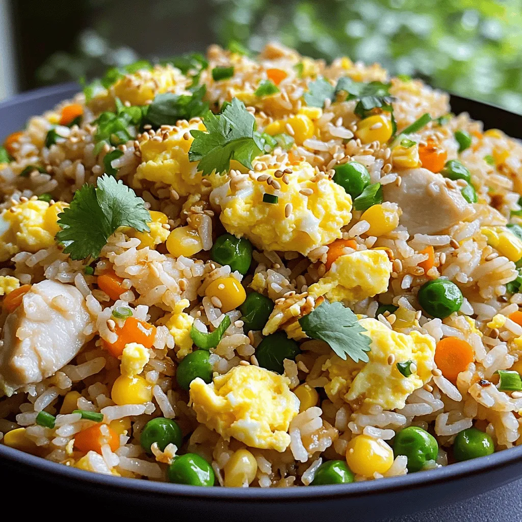 Garnishing can elevate your dish. Sprinkle toasted sesame seeds on top for crunch. Use sliced green onions for a pop of color. For a restaurant-style finish, add chopped cilantro. Serve the fried rice in a bowl for an appealing look. You can also use a ring mold for a perfect shape.