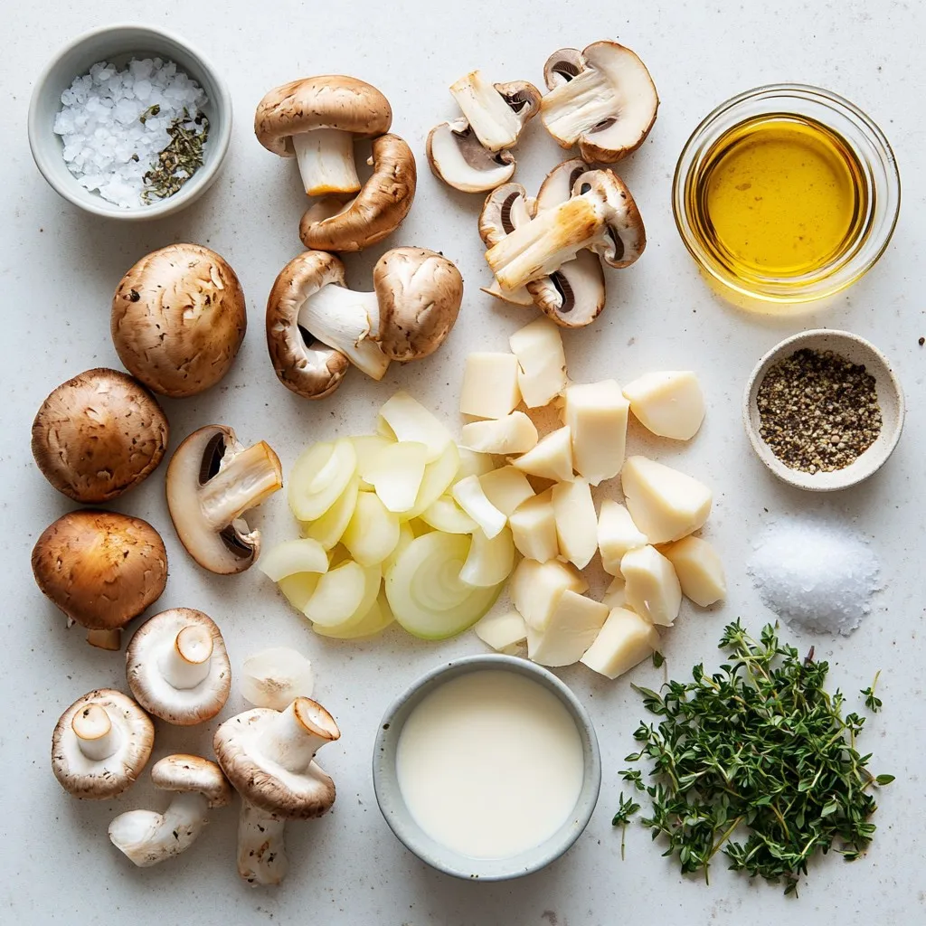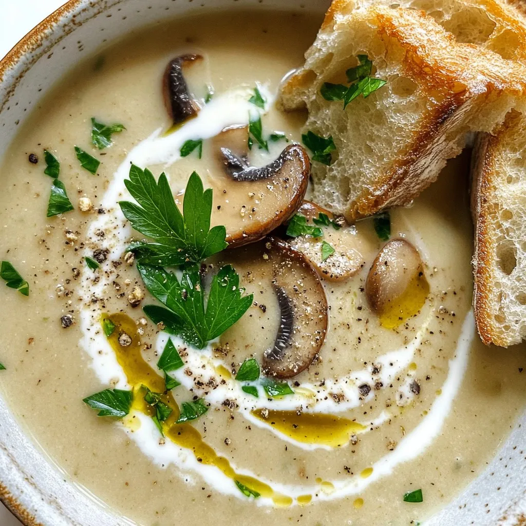 To make a silky creamy mushroom soup, you need simple and fresh ingredients. Here’s what you will need: - 500g mixed mushrooms (such as button, cremini, and shiitake), thinly sliced - 1 medium onion, finely diced - 3 cloves of garlic, minced - 2 tablespoons extra virgin olive oil - 4 cups vegetable broth - 1 cup heavy cream (or coconut cream for a dairy-free option) - 1 teaspoon fresh thyme leaves (or ½ teaspoon dried thyme) - Salt and freshly cracked black pepper to taste - 2 tablespoons fresh parsley, chopped (for garnish) Using these fresh ingredients ensures a rich and flavorful soup. The mix of mushrooms adds depth to the taste. Fresh thyme brings a nice aroma, while the cream gives it that silky smooth texture. Enjoy choosing quality ingredients, as they make all the difference in your dish! {{ingredient_image_2}} 1. Heat 2 tablespoons of extra virgin olive oil in a large pot over medium heat. Wait until it shimmers. 2. Add 1 finely diced onion. Sauté for about 5 minutes, until it looks soft and clear. 3. Next, stir in 3 minced garlic cloves. Cook for another 1-2 minutes. Watch it closely; you don’t want it to brown. 4. Now, add 500g of thinly sliced mixed mushrooms to the pot. Stir them every few minutes. Cook for about 7-10 minutes. The mushrooms should soften and release their moisture. 1. Sprinkle in 1 teaspoon of fresh thyme leaves and add salt and freshly cracked black pepper to taste. Stir everything together well. 2. Pour in 4 cups of vegetable broth. Raise the heat and let it come to a gentle boil. Once it boils, reduce the heat and let it simmer for 15 minutes. This helps the flavors blend nicely. 3. After simmering, it’s time to blend! Use an immersion blender to mix the soup until it is silky and creamy. If you don’t have one, carefully transfer batches to a standard blender. 1. Return the blended soup to low heat. Stir in 1 cup of heavy cream or coconut cream. Warm it gently, but don’t let it boil. 2. Taste the soup. Adjust the seasoning with more salt or pepper if needed. 3. Serve your soup hot. Don’t forget to garnish it with 2 tablespoons of chopped fresh parsley for a pop of color. To get that smooth, creamy feel, blending is key. I always use an immersion blender. It lets me blend the soup right in the pot. If you don’t have one, a regular blender works too. Just remember to blend in batches to avoid spills. For cream, I recommend heavy cream for a rich taste. If you want a lighter option, use coconut cream. It gives a nice flavor and works well for dairy-free diets. Want to add more flavor? Fresh herbs like rosemary or basil can really elevate the taste. I like to mix in a bit of parsley or chives for a fresh kick. When it comes to broth, homemade is best if you have time. It packs more flavor. But if you’re short on time, store-bought broth works fine. Just choose a low-sodium version to keep control over salt. Serve this soup hot for the best experience. I like to pair it with crusty bread, perfect for dipping. For garnishes, fresh parsley adds nice color and flavor. A swirl of cream on top makes it look fancy. You can also sprinkle some black pepper for a touch of spice. For a chic presentation, use shallow bowls and warm them before serving. This little touch makes your meal feel special! Pro Tips Use Fresh Mushrooms: Fresh mushrooms provide a richer flavor and better texture compared to canned varieties. Choose a mix for depth! Blend for Creaminess: An immersion blender is perfect for achieving a silky texture without transferring the soup in batches. Adjust the Creaminess: For a lighter soup, start with less cream and gradually add until it reaches your desired richness. Season Gradually: Always taste and adjust seasoning towards the end of cooking to ensure the best balance of flavors. {{image_4}} If you want a creamy soup without dairy, try coconut cream. It gives a rich flavor and smooth texture. Simply replace the heavy cream with one cup of coconut cream. You can also use almond milk or cashew cream for a lighter touch. Each choice adds its unique taste, so feel free to experiment. You’ll still enjoy a silky finish. To make this soup more filling, think about adding proteins. Tofu works well here. Cut it into cubes and sauté it with the onions. If you prefer meat, try cooked chicken. Shred the chicken and stir it in right before serving. These options not only boost nutrition but also add heartiness to your meal. If you want your soup to be a full meal, consider adding grains or legumes. Cooked rice or quinoa can be a great addition. You can also use lentils for extra fiber. Just add them during the simmering stage. This way, they soak up all the flavors and make the soup even more satisfying. Enjoy your bowl of joy! To keep your silky creamy mushroom soup fresh, store it properly. First, let the soup cool down to room temperature. Then, pour it into an airtight container. Place it in the refrigerator if you plan to eat it within three days. For longer storage, freeze the soup. Use freezer-safe containers or bags. Leave some space in the container for expansion. This soup can last up to three months in the freezer. Reheating the soup is easy. For the best taste, use the stove. Pour the soup into a pot and heat it over low to medium heat. Stir it often to avoid sticking. If the soup is too thick, add a splash of vegetable broth or water. You can also use a microwave. Place the soup in a microwave-safe bowl. Heat it in short bursts, stirring in between. This way, it heats evenly. Enjoy your warm, silky soup! To make this soup vegan, swap the heavy cream with coconut cream or any plant-based cream. Use vegetable broth instead of chicken broth. The mushrooms, onion, and garlic remain unchanged. This way, you keep all the rich and creamy flavors while making it vegan-friendly. Yes, you can use dried mushrooms! To rehydrate them, soak them in warm water for about 20 to 30 minutes. After they swell and soften, drain and chop them. Add the