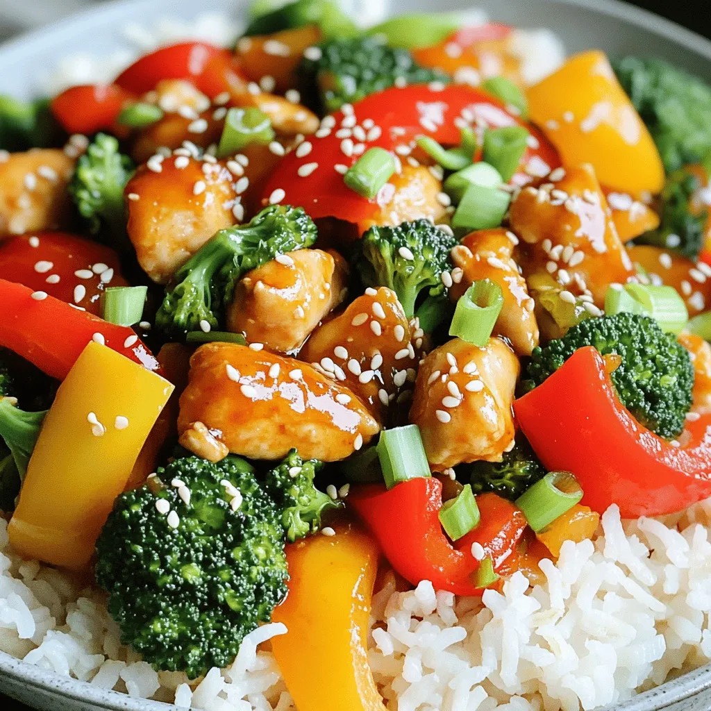 In this dish, the main ingredients bring a mix of flavors and colors. The chicken offers protein, while the bell peppers and broccoli add crunch and nutrients. Garlic and ginger bring a fantastic aroma. Sweet chili sauce adds a nice touch of heat and sweetness. Soy sauce gives it a savory depth. The cornstarch helps the chicken crisp up nicely, making every bite delightful.