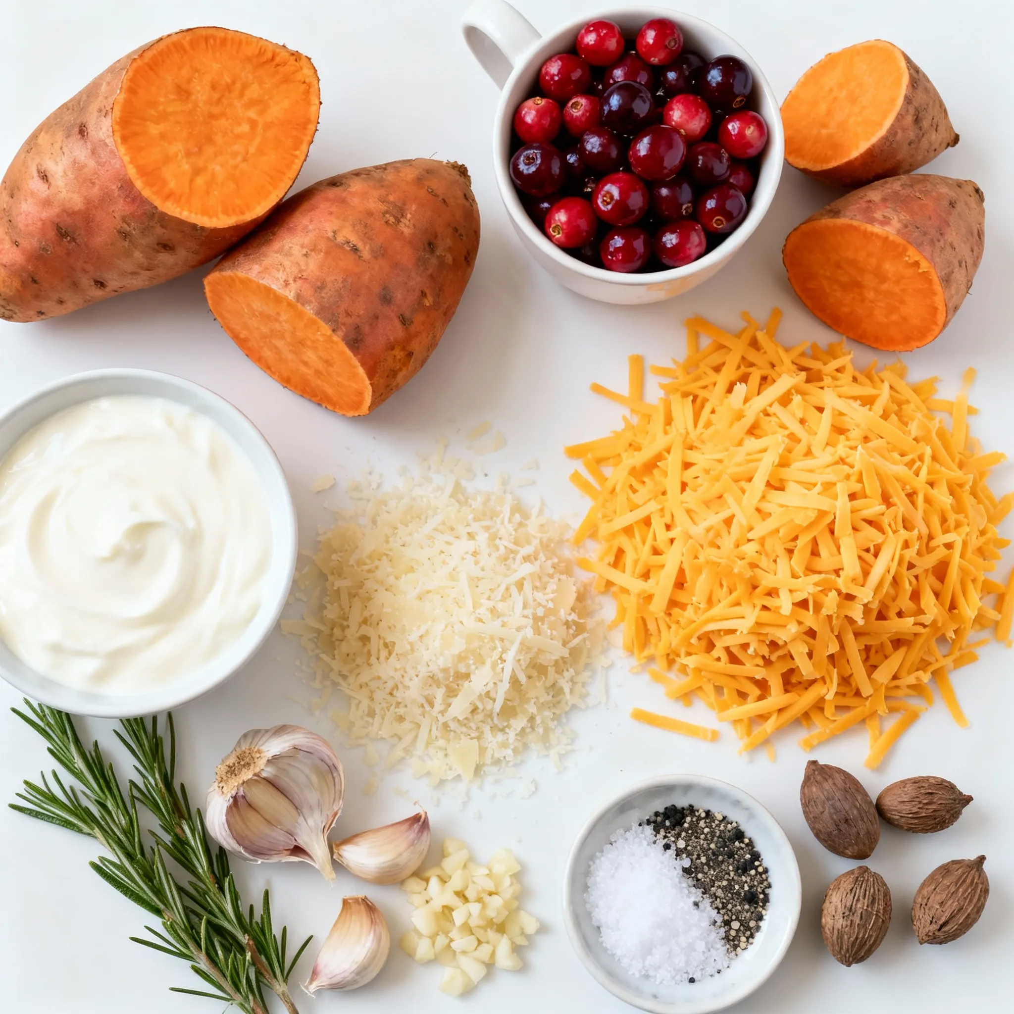 Each ingredient plays a special role. The sweet potatoes bring a creamy texture. Cranberries add a tart burst that balances the dish. Heavy cream makes everything rich and smooth. Cheddar and Parmesan cheeses melt beautifully, creating a golden top. Garlic and rosemary offer fresh, bold flavors that brighten each bite. Seasonings like salt, black pepper, and nutmeg enhance all the tastes. Butter helps the gratin not stick to the dish. If you want a bit of crunch, sprinkle breadcrumbs on top before baking.