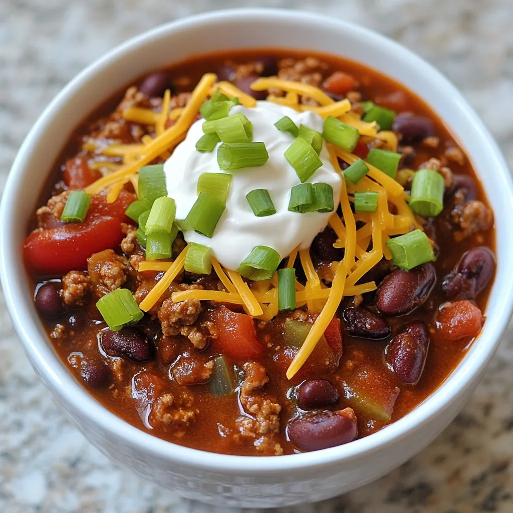 Toppings elevate your chili. Shredded cheese melts into the hot chili, adding creaminess. Sour cream cools the heat and adds a tangy bite. Chopped green onions give a fresh crunch. Cilantro adds brightness and a pop of color. Feel free to mix and match!